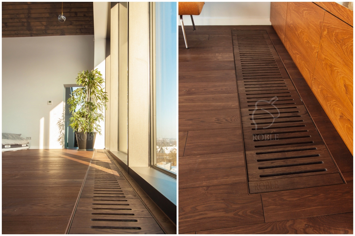 | Wood: oak | Color: dark gringo | Classification: rustic | Lengths: mix from 1.0 to 2.1m | Width: 18cm | Thickness: 16mm (6mm of hardwood) | Finish: hard wax-oil | 4-sided chamfering | Structured surface