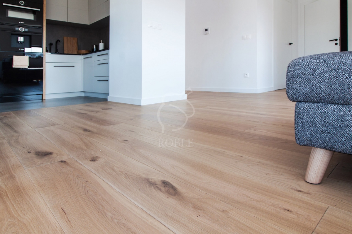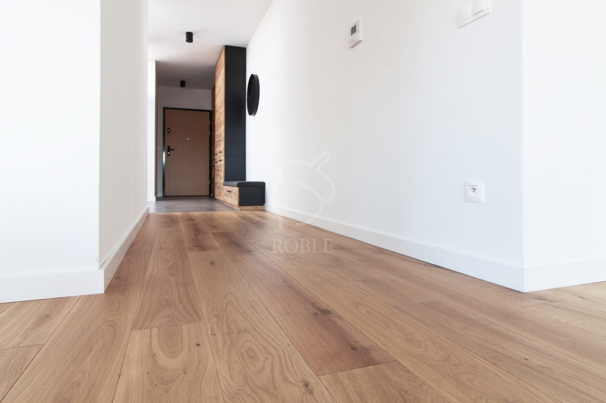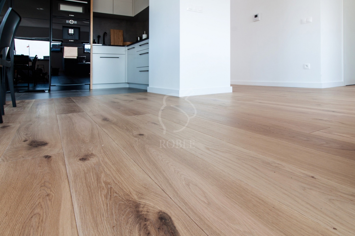 Roble Engineered Wood | Wood: oak | Color: rocho | Classification: rustic | Lengths: mix from 1.0 to 2.1m | Width: 18cm | Thickness: 14mm (4mm of hardwood) | Finish: hard wax-oil | 4-sided chamfering | Smooth surface