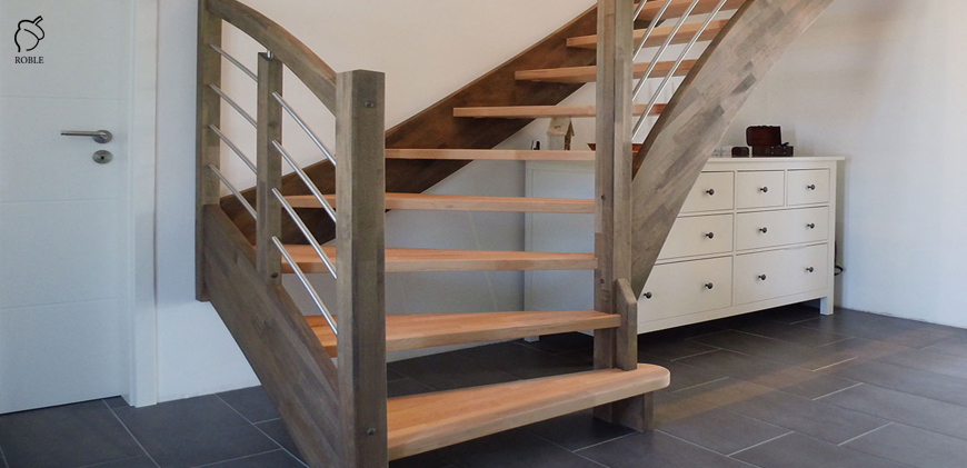 Roble Open Riser - Closed String Stairs SR16 | Wood: Oak | Finish: lacquer | Thickness: 4cm | Balustrade: wood with steel ties