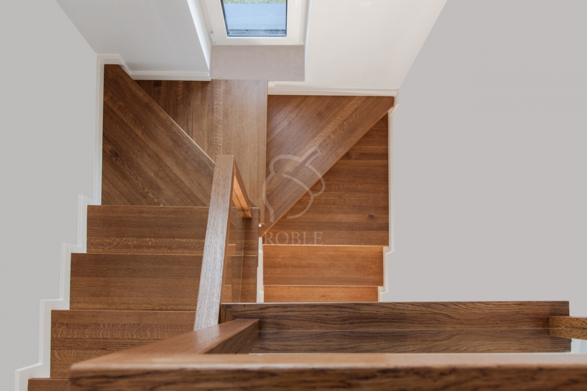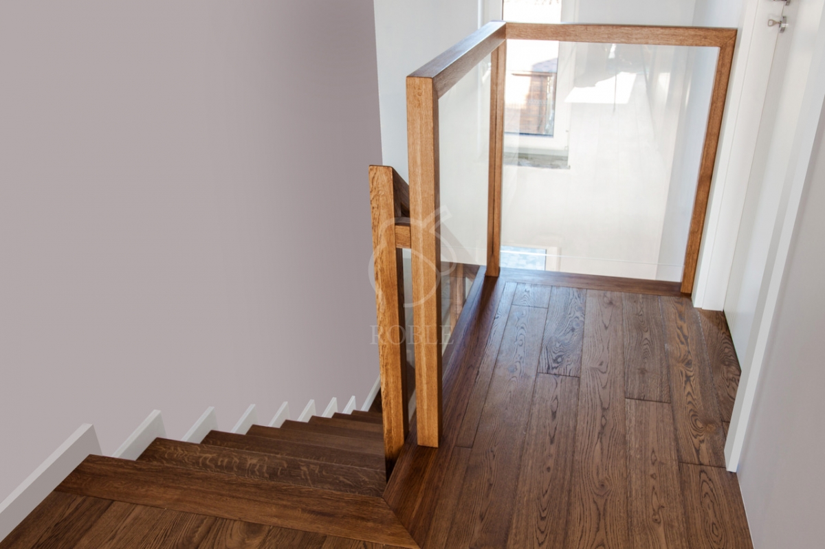 Roble Classic Stairs SR21 | Wood: oak | Finish: hard wax-oil | Color: per request | Material of the risers: MDF | Balustrade: float glass + oak wood