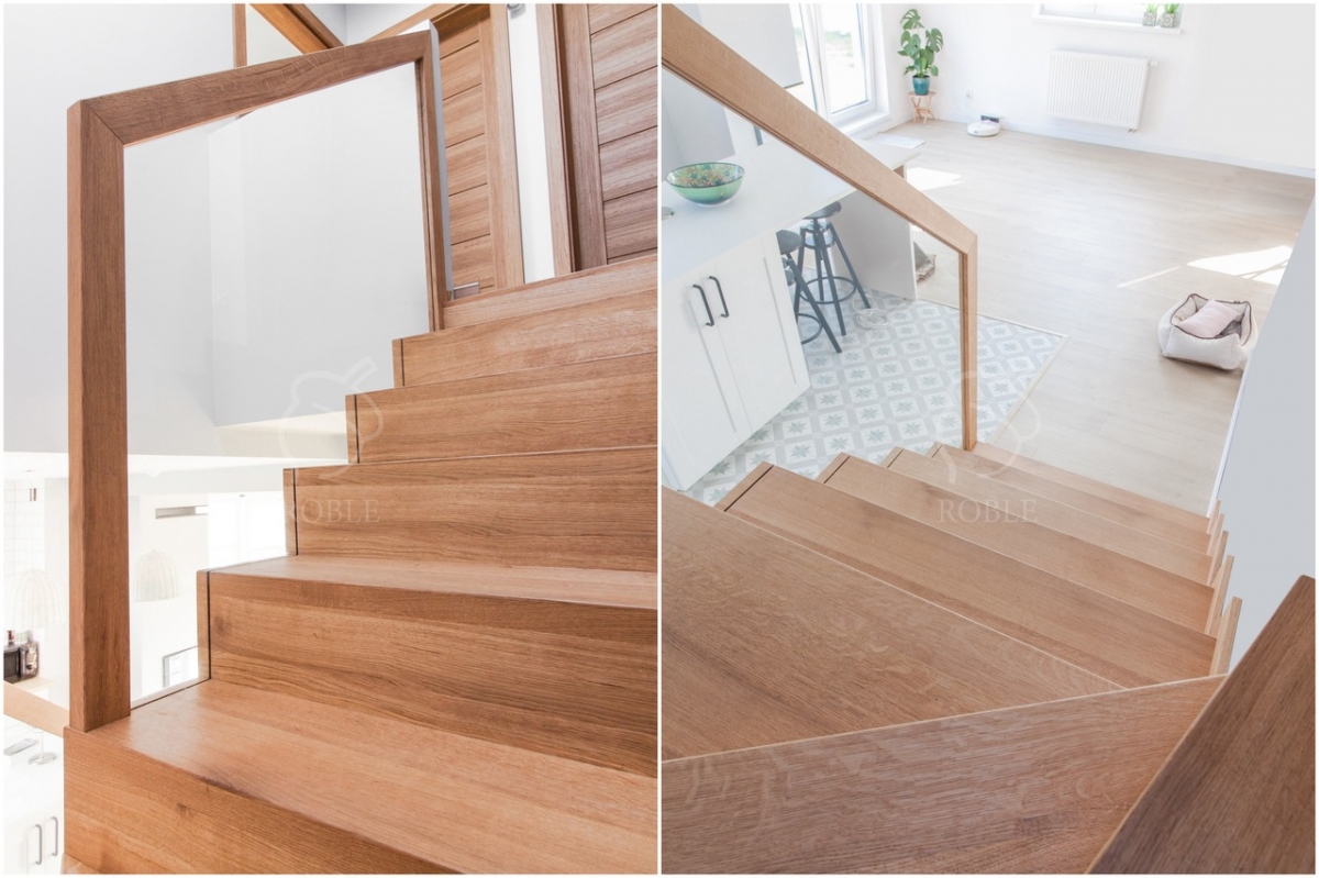 Roble Classic Stairs SR26 | Wood: oak | Finish: hard wax-oil | Color: natural | Balustrade: float glass + oak wood