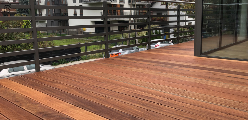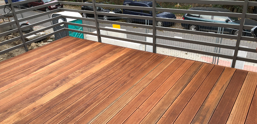 Roble Exotic Wood Terrace | Wood: bangkirai | Lenght: up to 4m | Width: 14,5cm | Thickness: 2,1cm | Fine textured | Class: I (selectable) | Finish: oil | Double exotic wood joist
