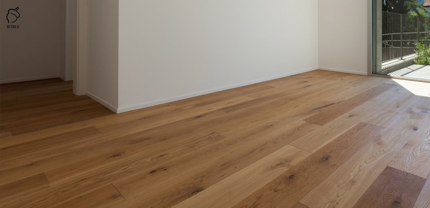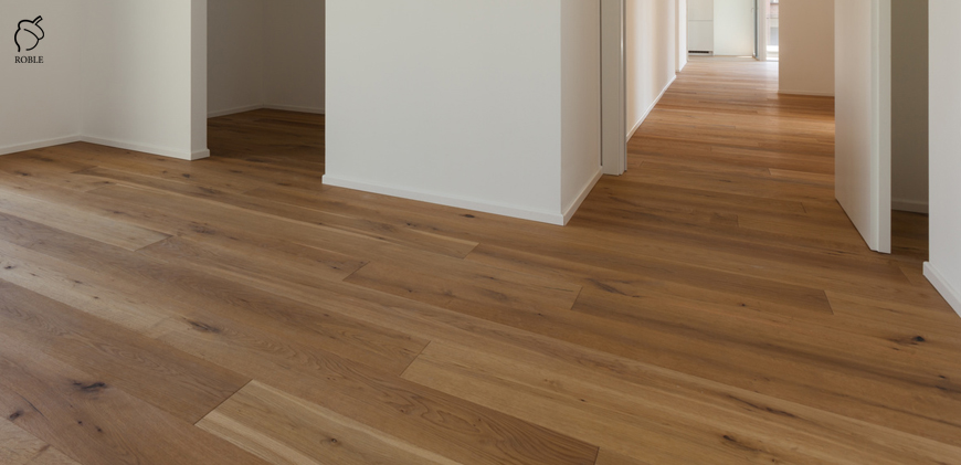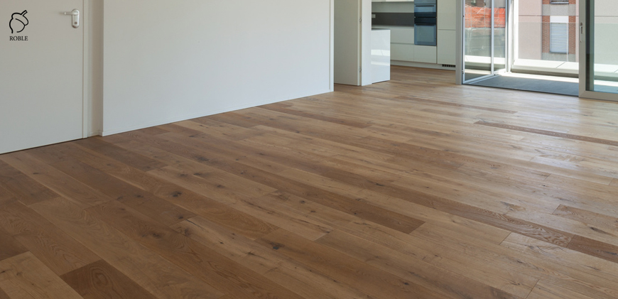 Roble Engineered Wood | Wood: oak | Color: calssic | Classification: rustic | Lengths: mix from 1.0 to 2.2m | Width: 18cm | Thickness: 14mm (4mm of hardwood) | Finish: hard wax-oil | 4-sided chamfering | Structured surface