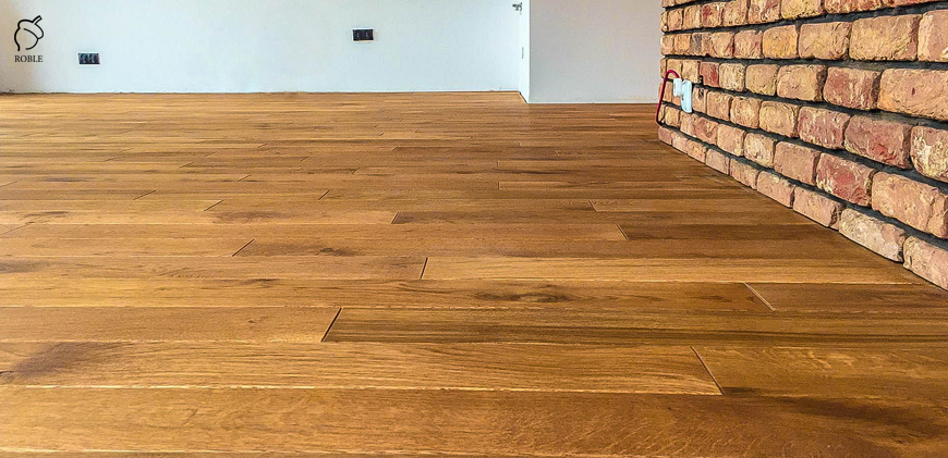 Roble Solid Wood | Wood: oak | Color: maron | Classification: rustic | Lengths: mix from 0.6 to 2.0m | Width: 16cm | Thickness: 11mm | Finish: hard wax-oil | 4-sided chamfering | Structured surface
