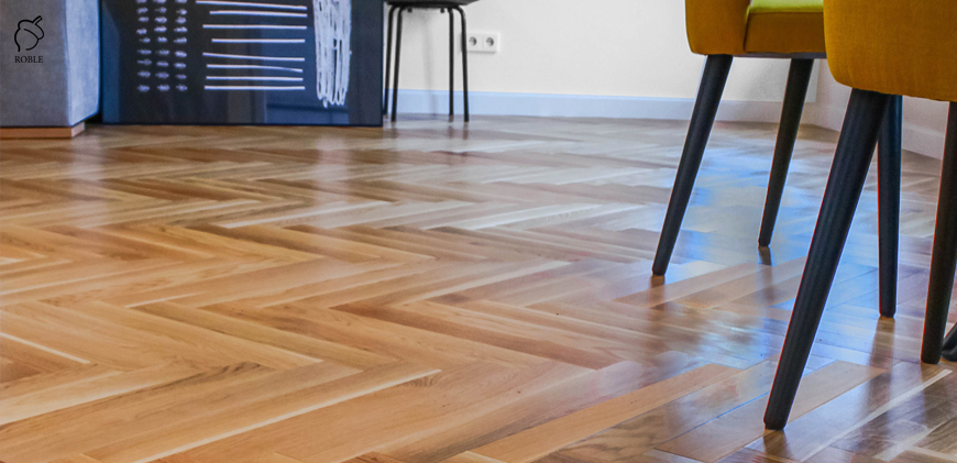 Roble Herringbone | Wood: oak | Color: rocho old | Classification: rustic | Length: 49cm | Width: 7cm | Thickness: 11mm (3mm of hardwood) | Finish: lacquer | 4-sided chamfering