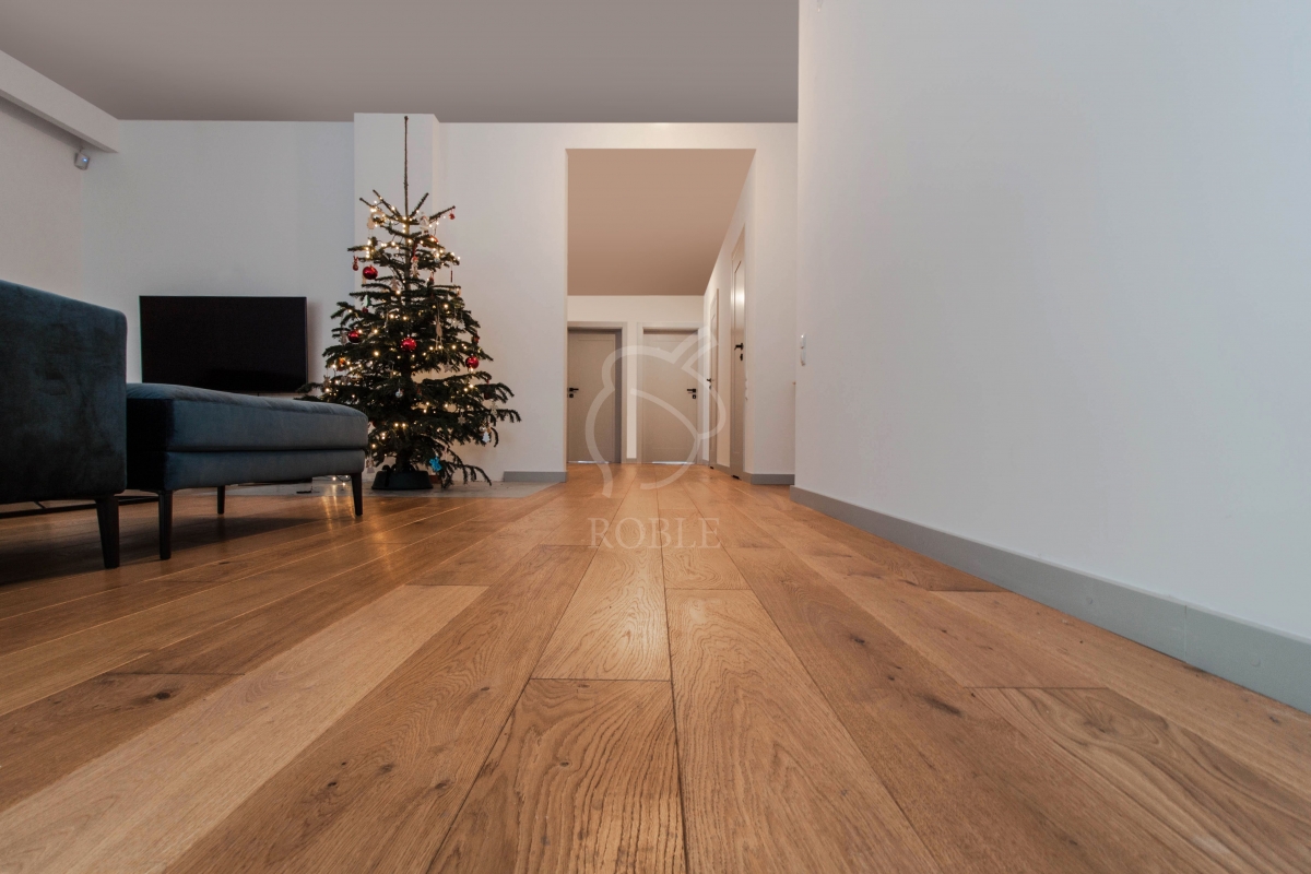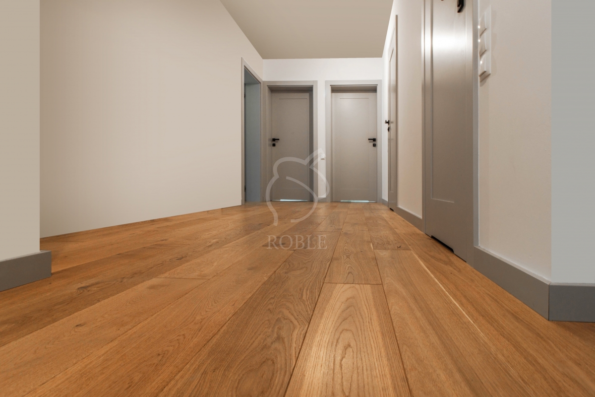Roble Engineered Wood | Wood: oak | Color: rocho old | Classification: rustic | Lengths: mix from 1.0 to 2.1m | Width: 18cm | Thickness: 14mm (4mm of hardwood) | Finish: hard wax-oil | 4-sided chamfering | Smooth surface