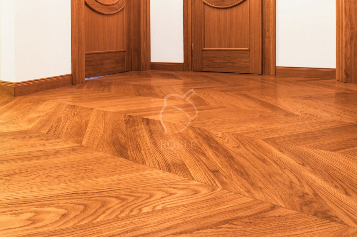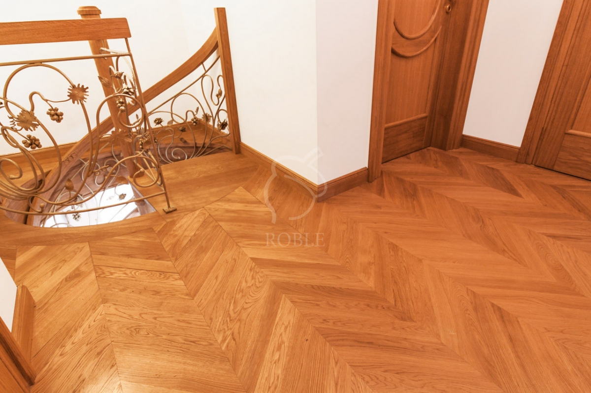 Roble Jodełka Francuska | Drewno: dąb | Klasa: natur | Kolor: maron | Długość: 0,5m | Szerokość: 9cm | Grubość: 15mm | Wykończenie: twardy wosk olejny