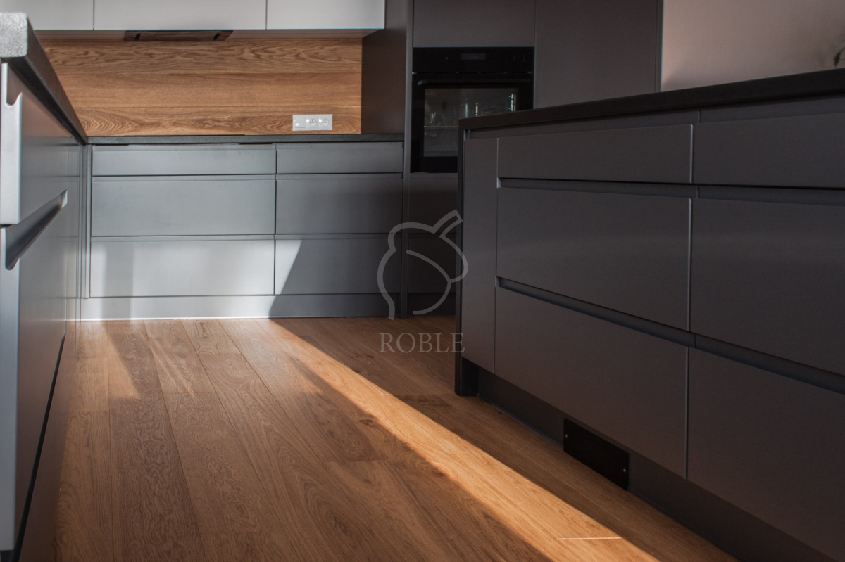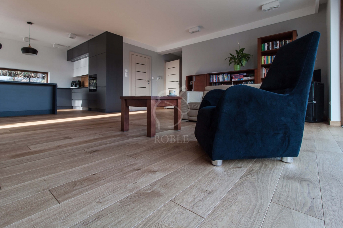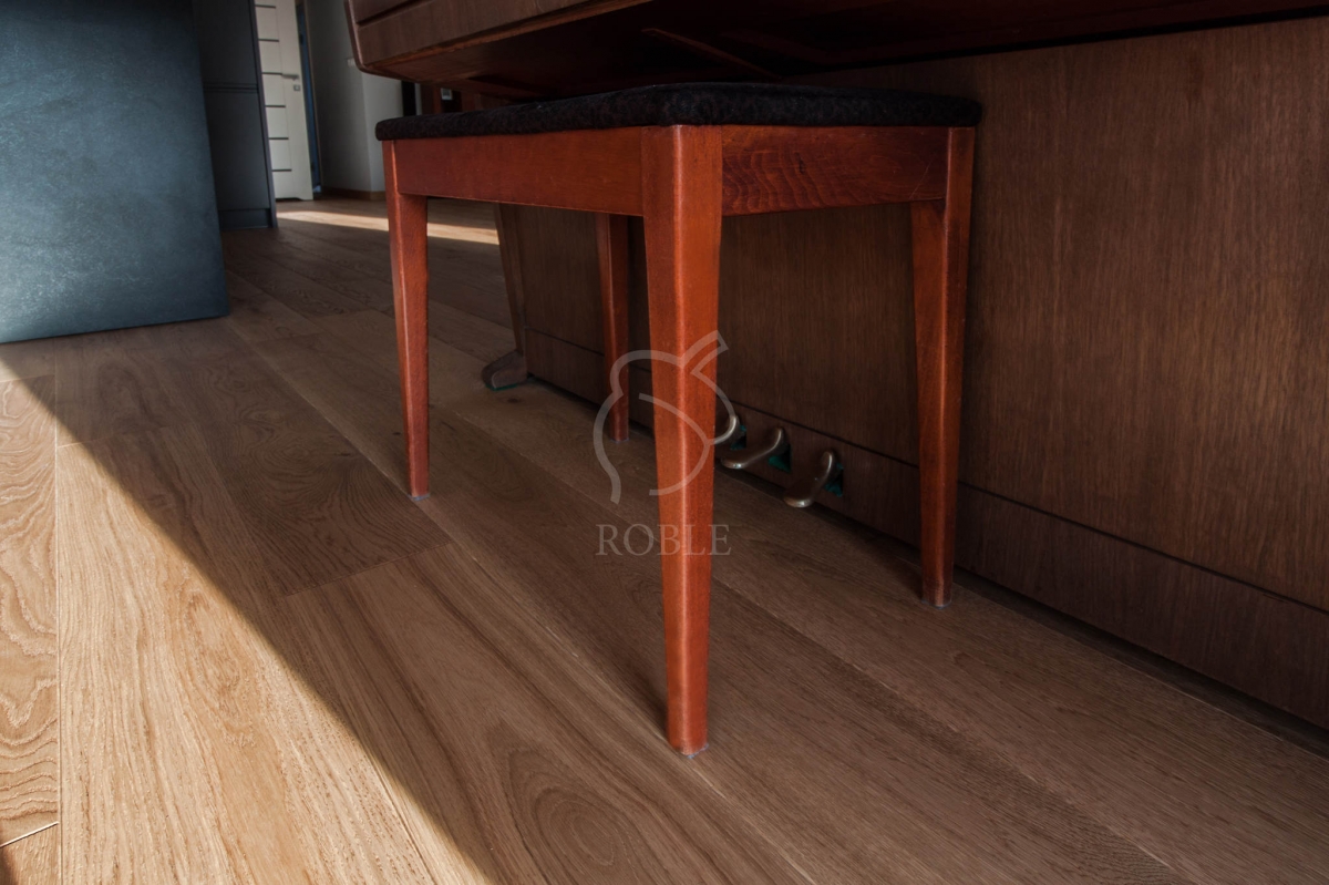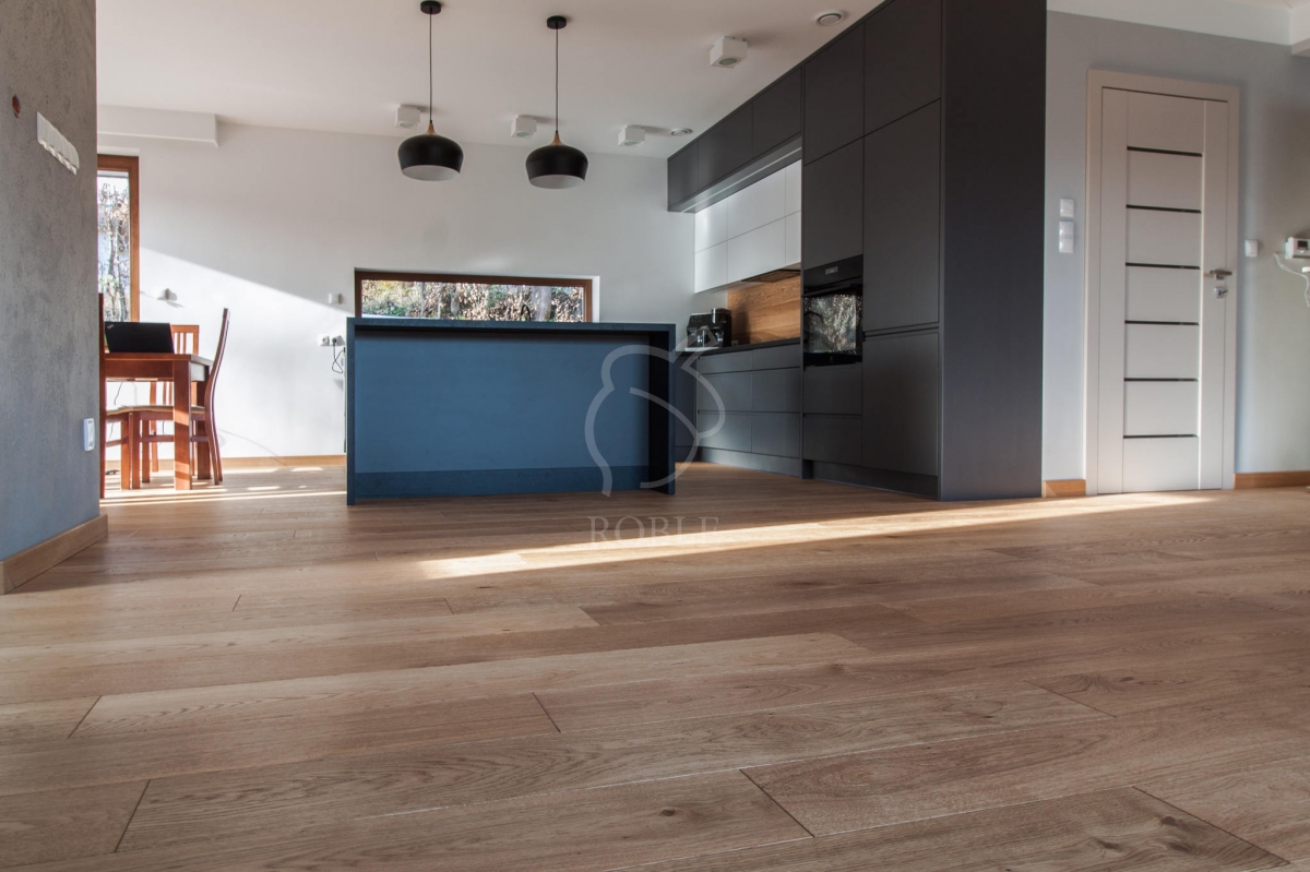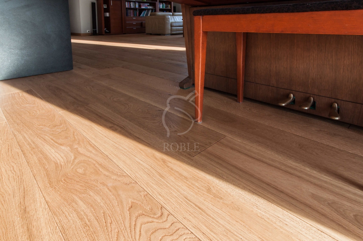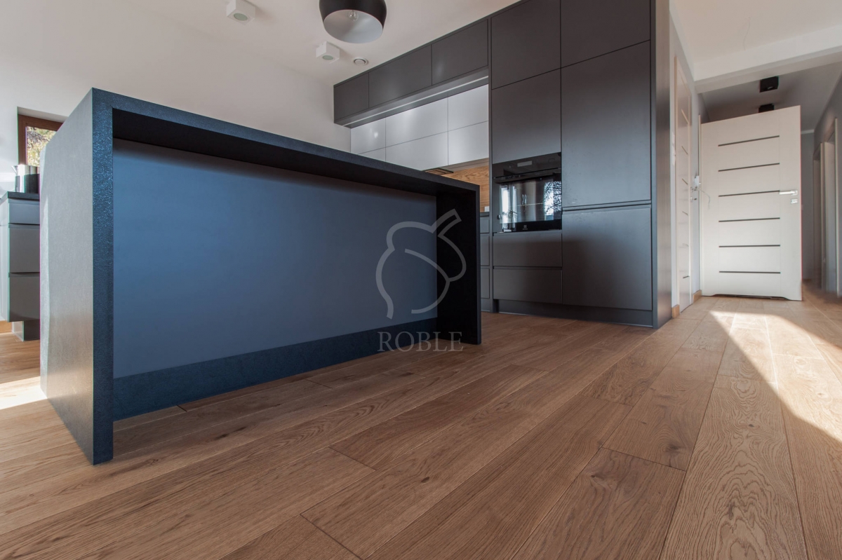 Roble Deska Warstwowa | Drewno: dąb | Kolor: rocho | Klasa: rustic | Długości: mix od 1,0 do 2,1m | Szerokość: 18cm | Grubość: 14mm (4mm litego drewna) | Wykończenie: twardy wosk olejny | 4-stronnie fazowana | Gładka powierzchnia