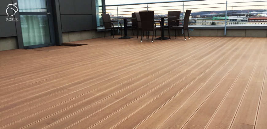| Długość: 4,5 mb | Szerokość: 14cm | Grubość: 2,5cm | montowane na systemie niewidocznego montażu | profil drobno ryflowany | kolor ciemny brąz
