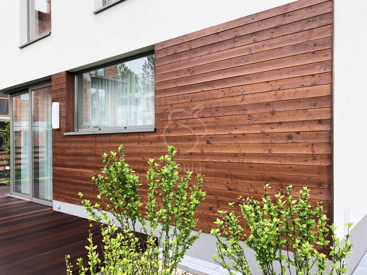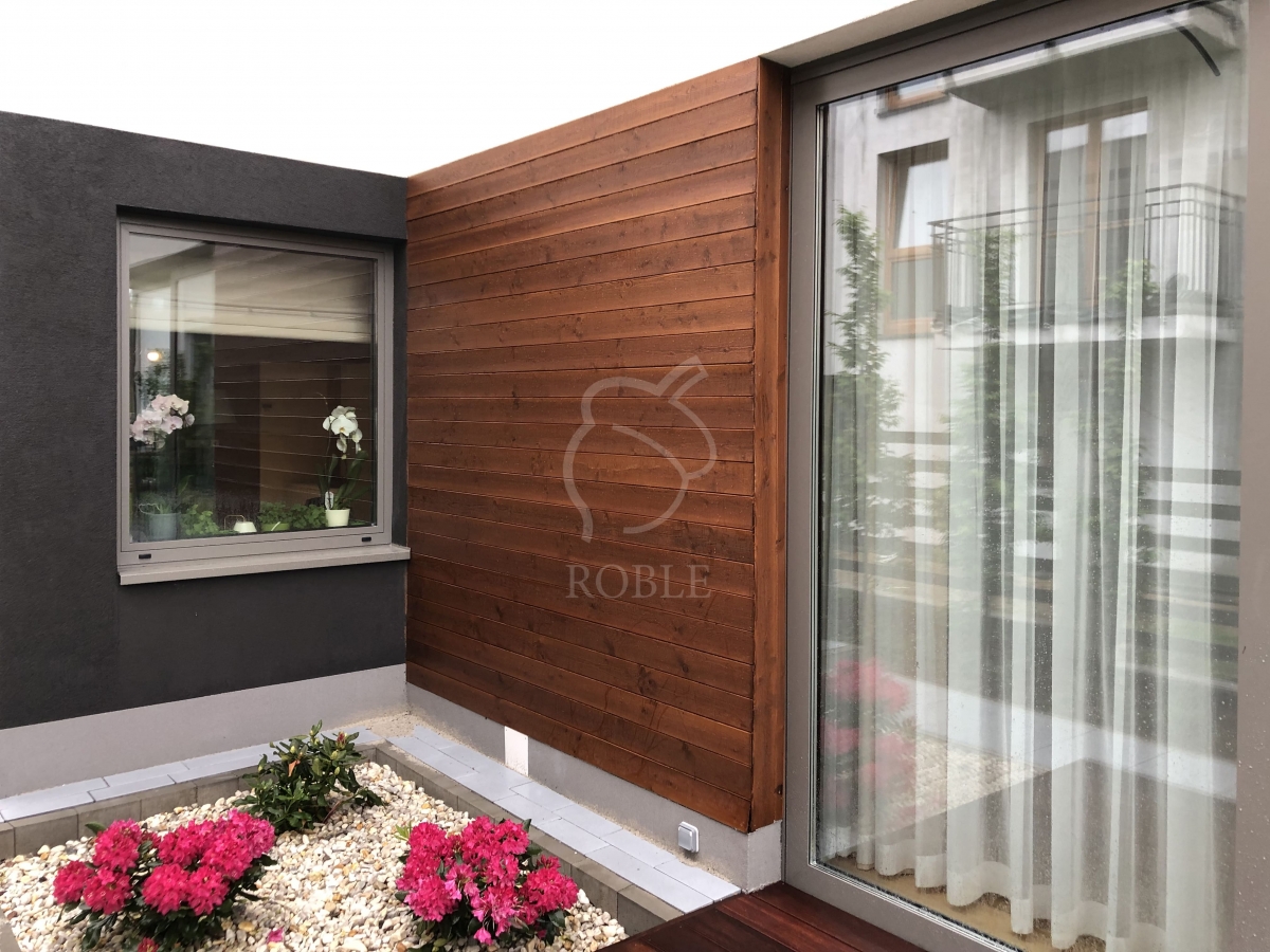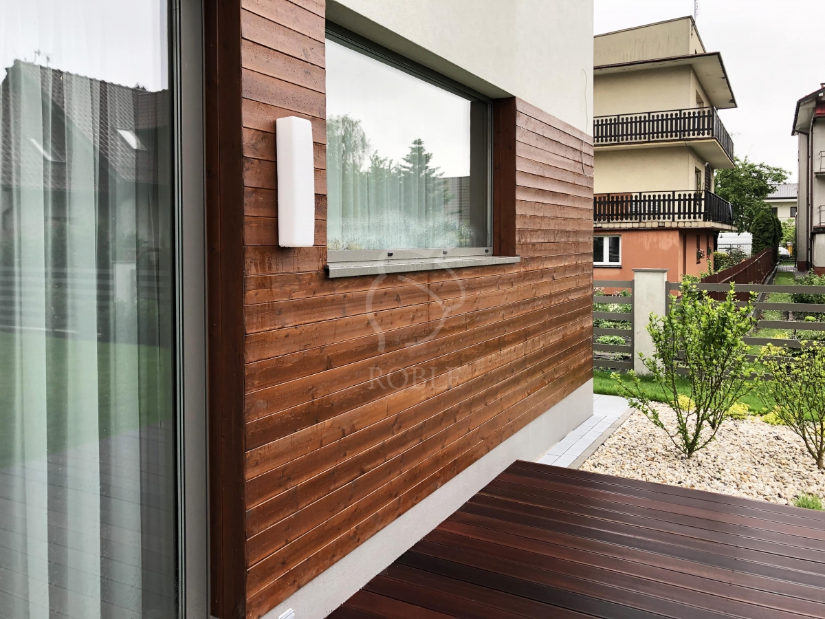 Roble Elewacje Drewniane | Drewno: modrzew syberyjski koloryzowany | Profil: faza | Wymiary: 21x119mm | Wykończenie: olej z barwnikiem