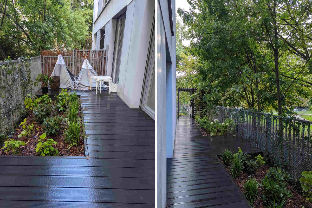 Roble Taras Kompozytowy | Długość: do 5m | Szerokość: 14cm | Grubość: 2,5cm | Montowane na systemie niewidocznego montażu | Profil drobno ryflowany | Kolor: grafit
