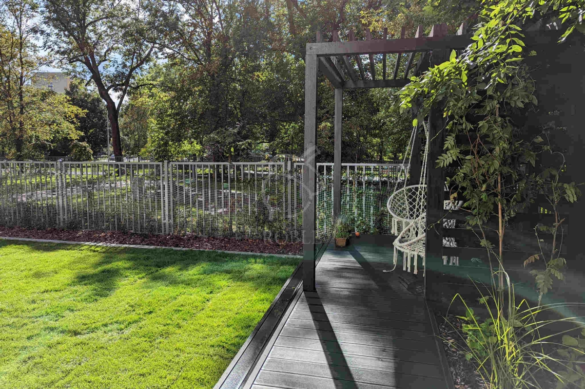 Konstrukcja Zewnętrzna (Pergola) | Słupy z drewna klejonego | Wykończenie: impregnowane, malowane pod kolor tarasu desek | Ażurowe wypełnienia