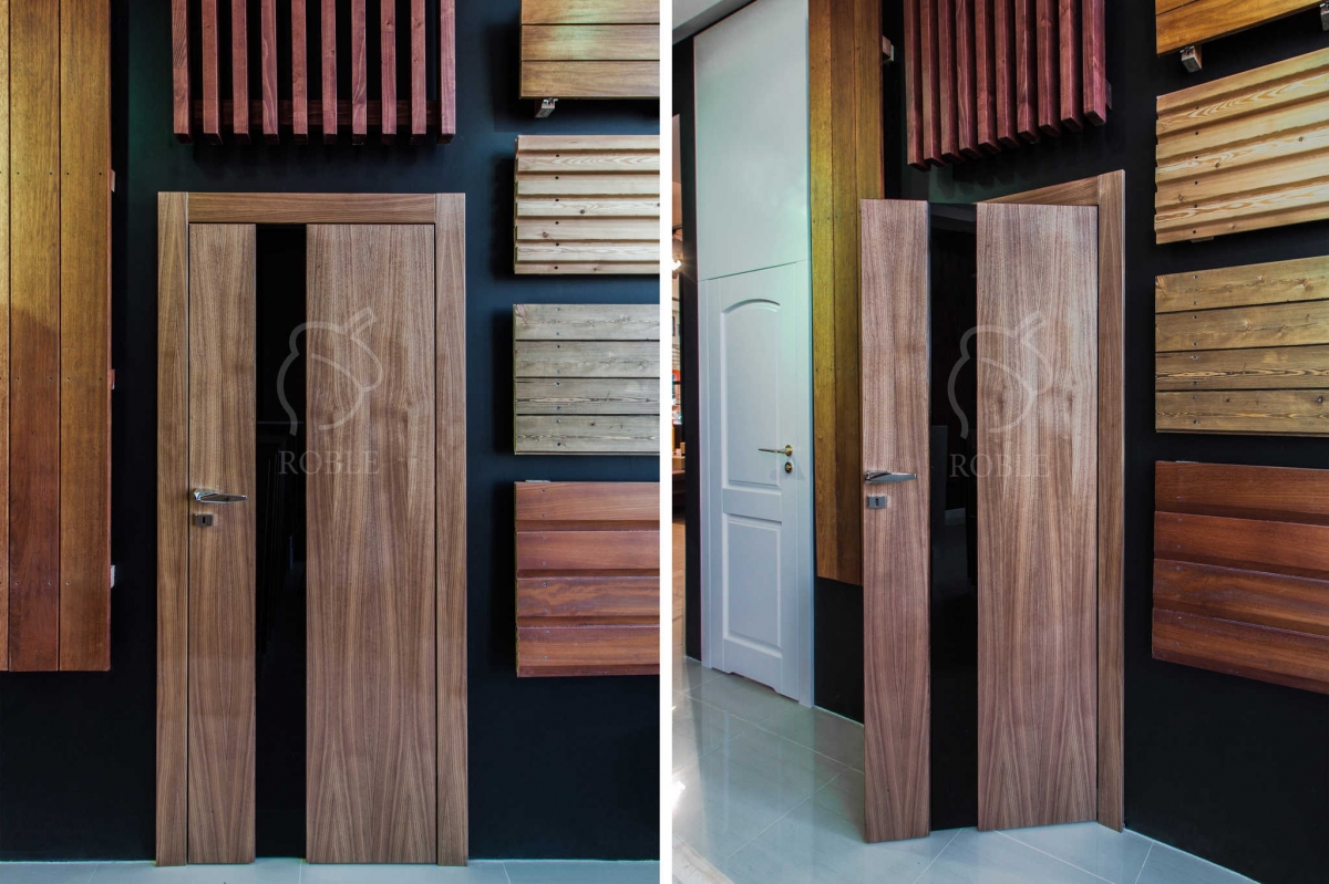 | Drewno: orzech amerykański | Wymiary: 90 x 203cm | Wykończenie: lakier błysk | Szkło: czarne dymione/antisol | Drzwi bez przylgi | Ościeżnica regulowana | Zamki magnetyczne | Zawiasy chowane