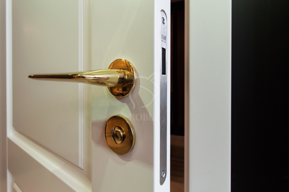 | Drewno: dąb malowany na biało, bez strukturyzacji powierzchni | Wymiary: 90 x 200cm | Wykończenie: lakier | Drzwi bez przylgi | Ościeżnica regulowana, stylizowana | Zamki magnetyczne | Zawiasy chowane
