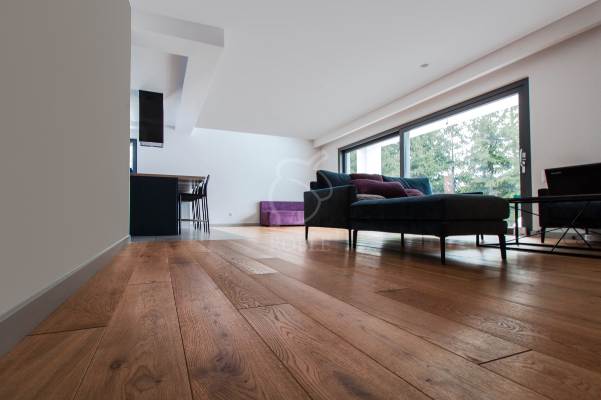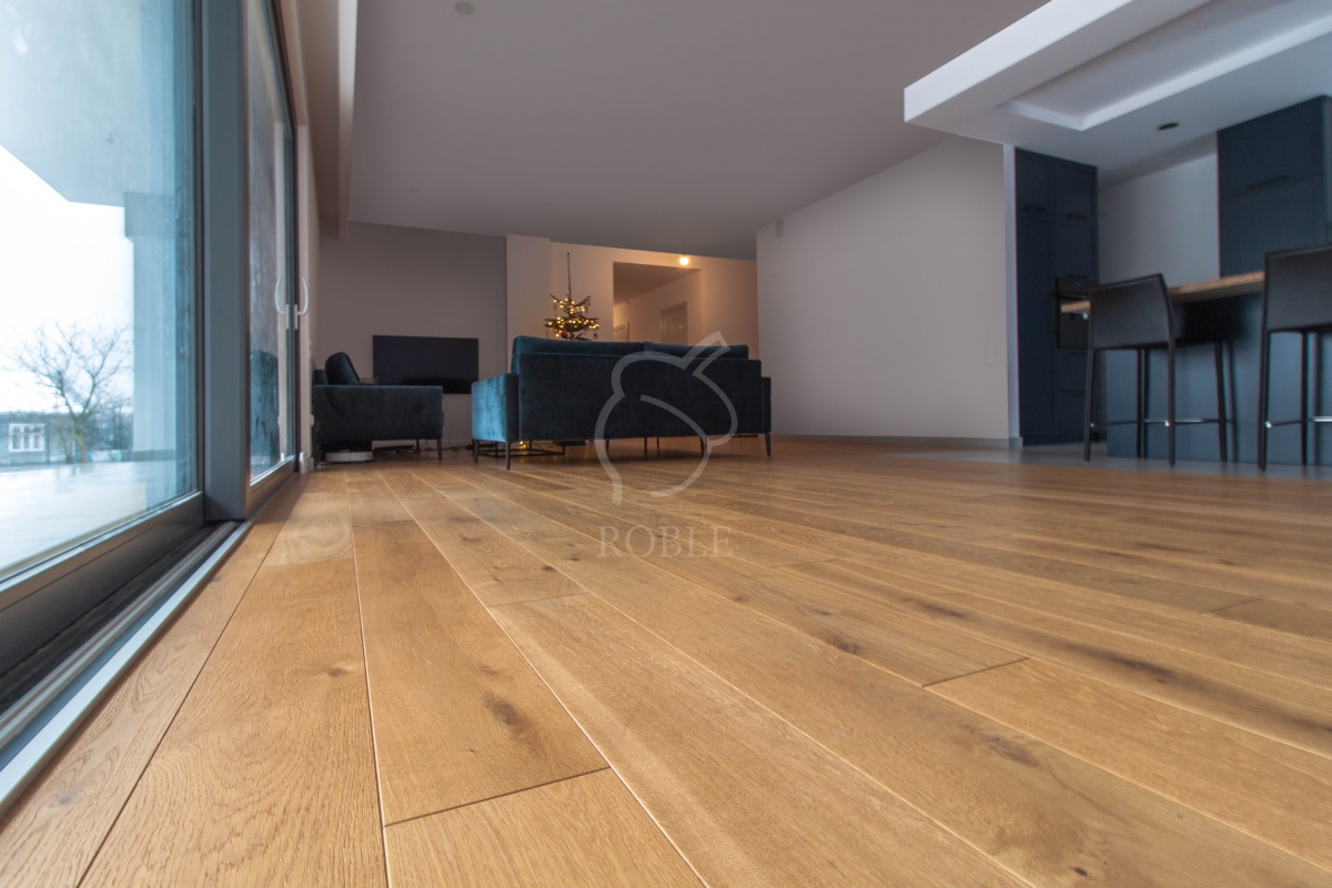 Roble Deska Warstwowa | Drewno: dąb | Kolor: rocho old | Klasa: rustic | Długości: mix od 1,0 do 2,1m | Szerokość: 18cm | Grubość: 14mm (4mm litego drewna) | Wykończenie: twardy wosk olejny | 4-stronnie fazowana | Gładka powierzchnia