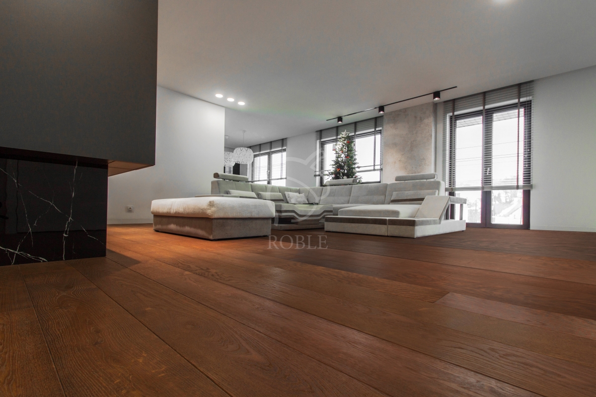 Roble Deska Warstwowa | Drewno: dąb | Kolor: na zamówienie | Klasa: rustic | Długości: mix od 1,0 do 2,1m | Szerokość: 18cm | Grubość: 14mm (4mm litego drewna) | Wykończenie: twardy wosk olejny | 4-stronnie fazowana | Delikatna strukturyzacja powierzchni