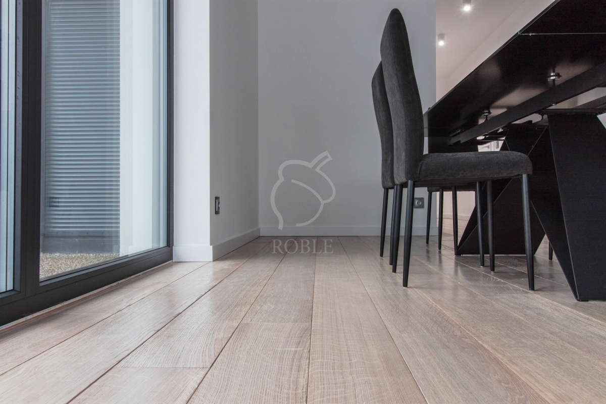 Roble Deska Lita | Drewno: dąb | Kolor: na zamówienie | Klasa: natur | Długości: mix od 1,0 do 2,1m | Szerokość: 15cm | Grubość: 14mm | Wykończenie: lakier błysk | 4-stronnie fazowana