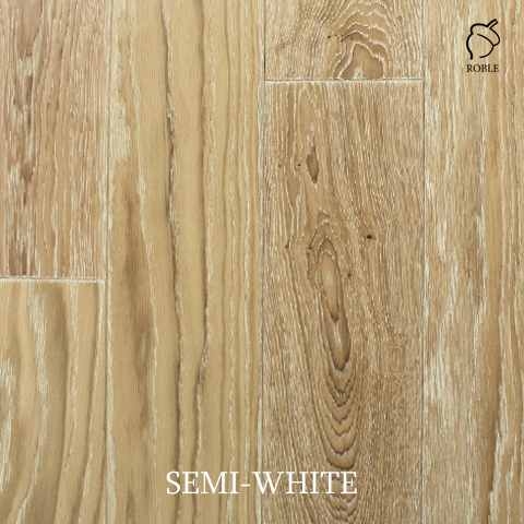 Bielić i rozjaśniać podłogę drewnianą można na różne sposoby, a w zależności od doboru metody i gatunku drewna, uzyskujemy inny efekt. Deska bielona to najczęściej jasna wersja naturalnego odcienia drewna. Dąb bielony traci wówczas swój typowy, żółtawy odcień w kierunku bieli, zależnie od stopnia bielenia, jednocześnie widoczne pozostają jego słoje. Jesion lub grab w wersji bielonej, szczególnie w klasyfikacji bezsęcznej, stają się bardziej ujednolicone kolorystycznie. Na zdjęciach wzorników powyżej znajdą Państwo także inne wersje bielenia, jakie wykonujemy. Należą do nich zabiegi, które stosujemy, by uzyskać wybielenie jedynie w celowo utworzonych wgłębieniach na powierzchni deski (np. w wyniku szczotkowania lub piłowania). Łączymy także kilka metod na jednej desce – opalanie, bielenie i piłę, by uzyskać nietuzinkowe wzory na drewnie jak np. Rio z piłą.