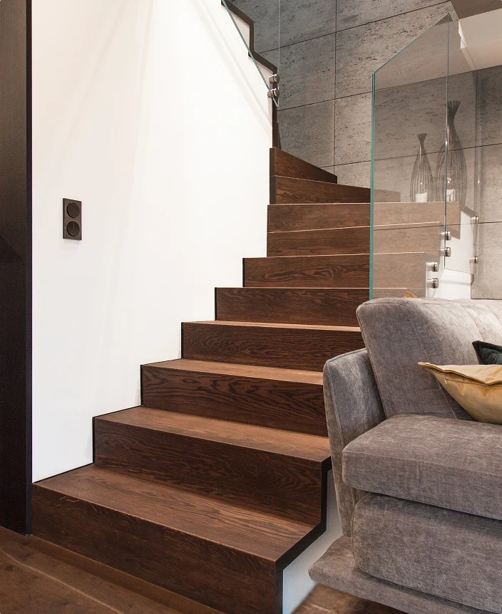 Oferujemy ekskluzywne schody drewniane, podłogi drewniane, a także inne elementy wykończenia wnętrz, które znacząco podniosą standard wnętrza. Kładziemy nacisk na jakość, tworząc produkty, które zachwycają, a nie tylko zadowalają klientów. Ponadto kompleksowość naszych usług pozwala na wzbogacenie wnętrza w piękne schody, podłogi i drzwi. Z kolei zewnętrzną strefę budynku uzupełnimy o tarasy oraz elewacje drewniane.